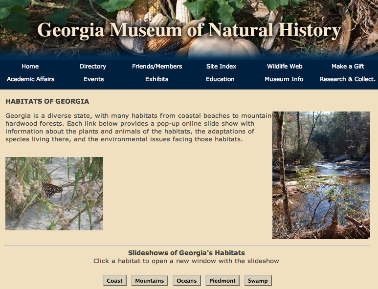 Explore Georgia's flora and fauna with slideshows from five regions of the state. Click the image above, or right